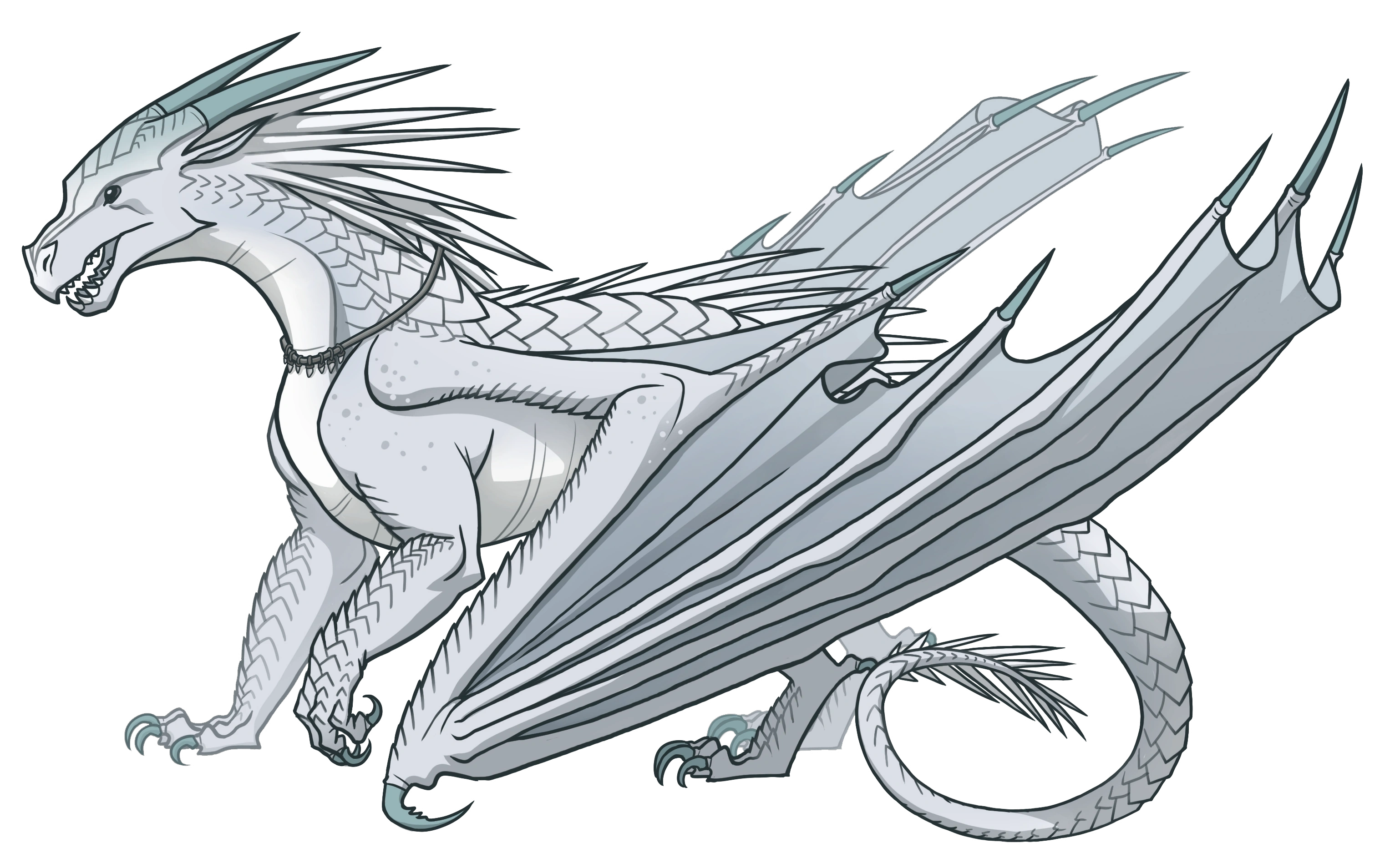 У Тундры холодные серые глаза цвета грозовых облаков и бледная, сверкающая льдисто-голубая чешуя. Она носит ожерелье с клыками небесных драконов.