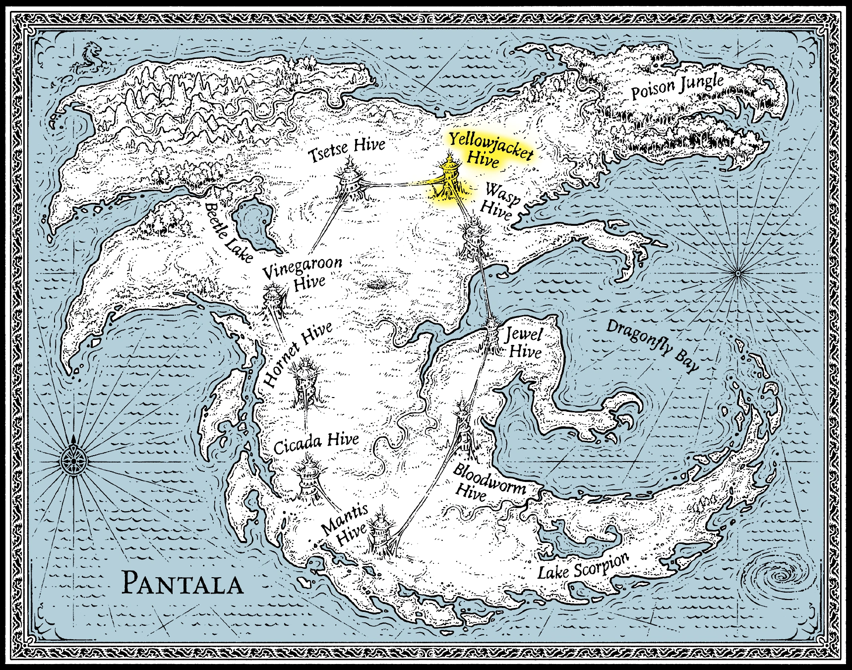 Улей Овод — один из девяти ульев Панталы, соединённый шёлковыми мостиками с ульями Цеце и Осы. Он является самым близким к Отравленным джунглям.